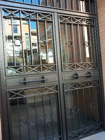 Portone in ferro a due ante con vetro integrato